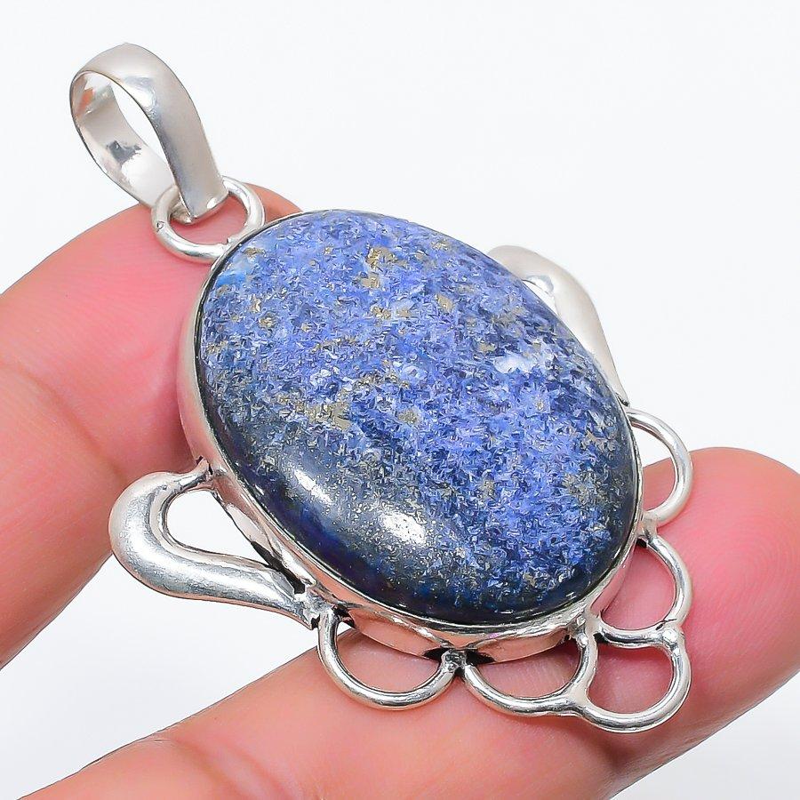 Натуральный драгоценный камень лазурит 925 стерлинговое серебро ювелирная подвеска 2,21" Q4w60