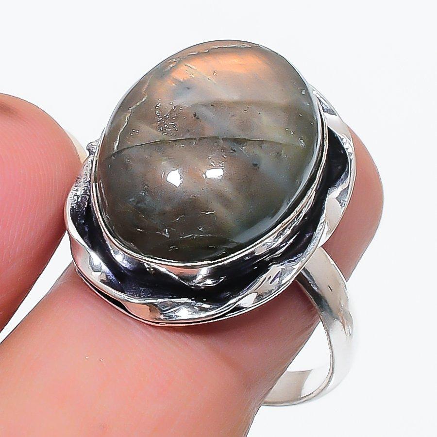 Natural Labradorite Gemstone 925 Sterling Silver Jewelry Ring Size 10 C4J97