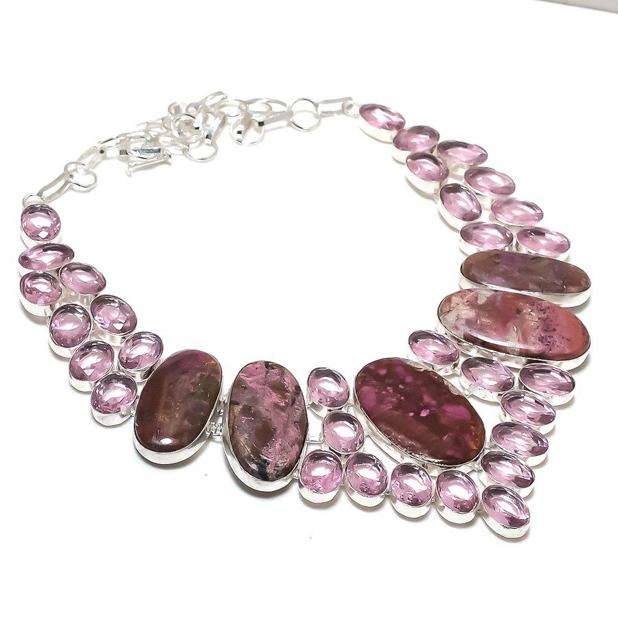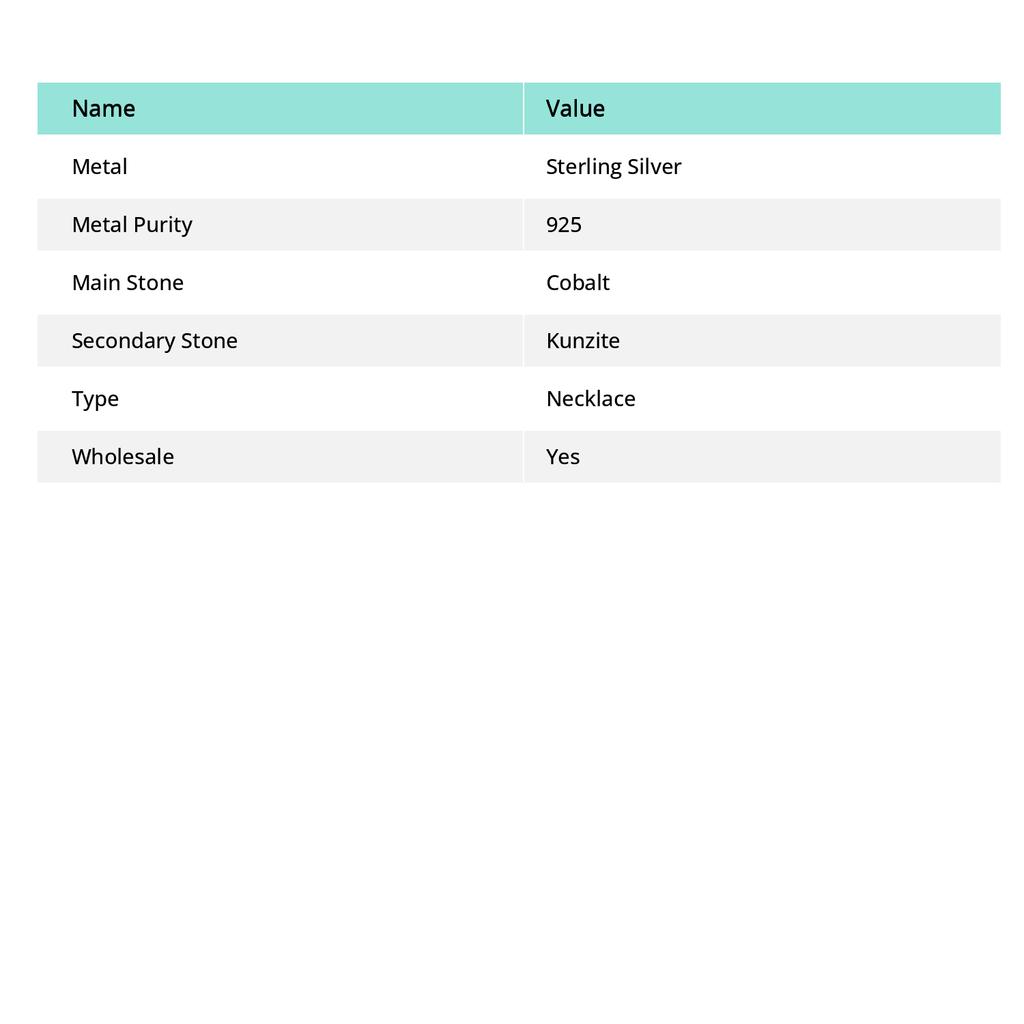 Натуральный кобальт, драгоценный камень кунцит, серебряное ювелирное ожерелье 925 пробы 18 дюймов r9y36