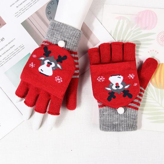 Женские перчатки с откидной крышкой и рисунком лося, зимние утолщенные теплые рождественские перчатки с половиной пальца — купить товар онлайн с бесплатной доставкой по всему миру!