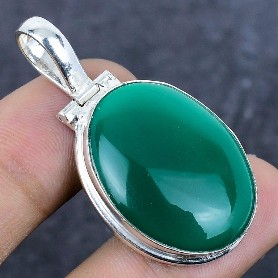Натуральный зеленый оникс драгоценный камень 925 стерлинговое серебро ювелирная подвеска 1,77" C2v83