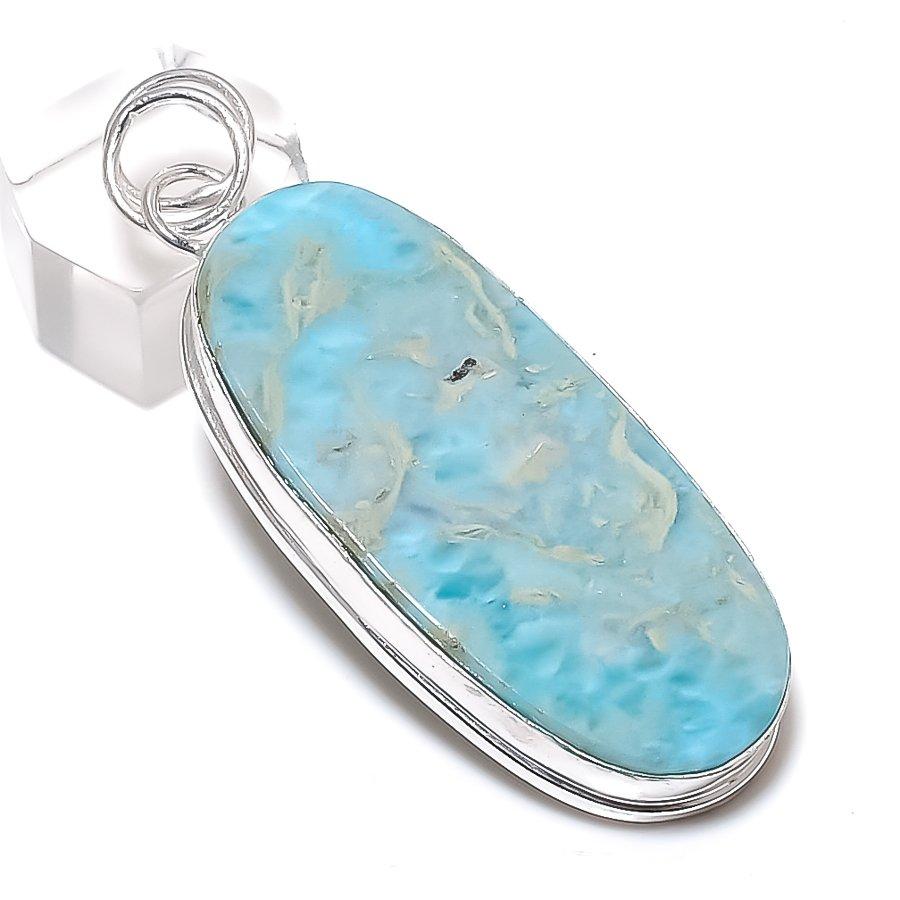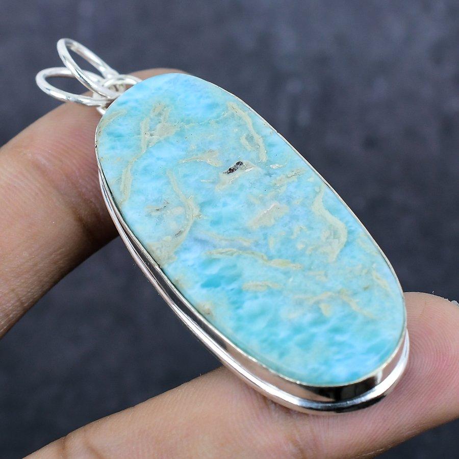 Подвеска из стерлингового серебра 925 пробы с натуральным камнем Ларимар 2,56 дюйма