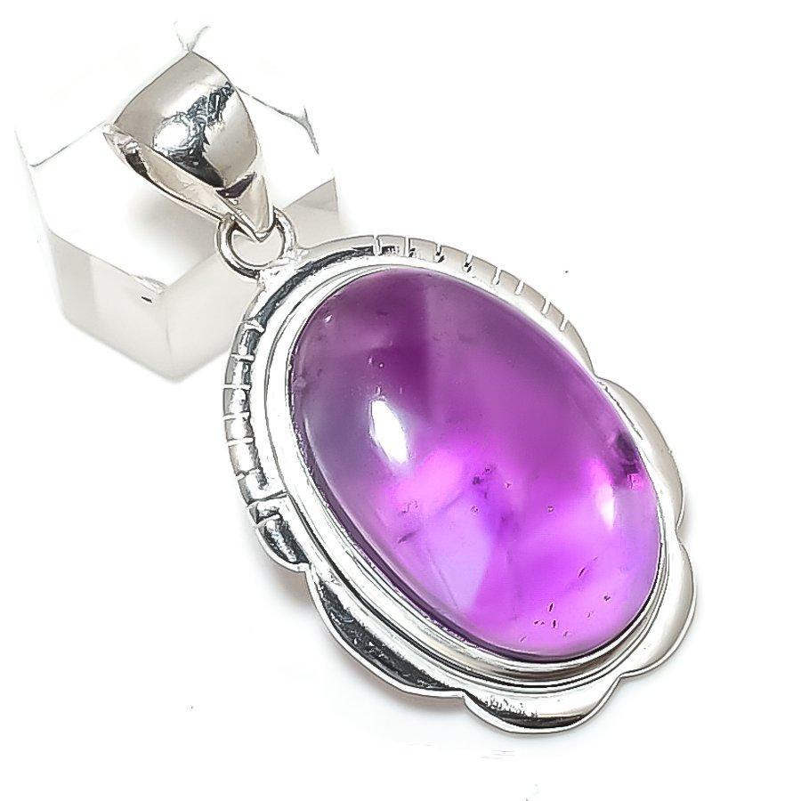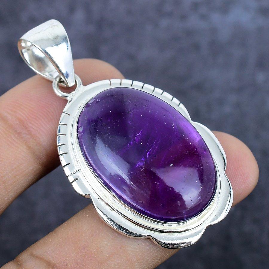 Натуральный Аметист Шалфея Драгоценный камень 925 Стерлинговое серебро Ювелирное изделие Подвеска 2.05"