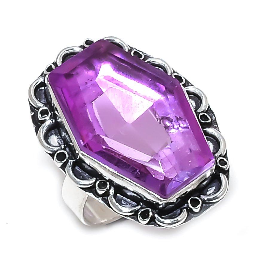 Натуральный Аметист Драгоценный Камень 925 Стерлинговое Серебро Ювелирное Кольцо Размер 9.5 G1u23