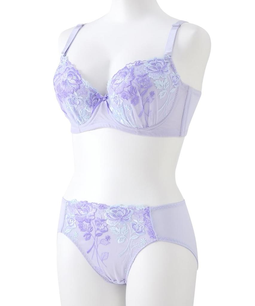 Внутренний высокий большой цветочный гламурный бюстгальтер и шорты [Nissen] женский комплект, сбоку, узор, комплект, фиолетовый, E90/3L