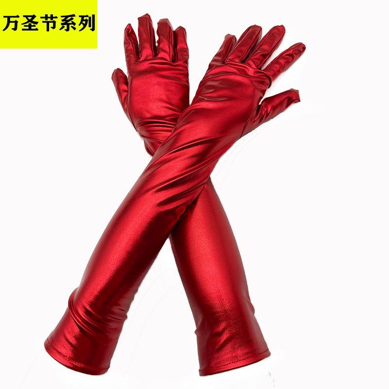 Женские повседневные перчатки из искусственной кожи, длинные облегающие варежки с мокрым эффектом, зима-осень
