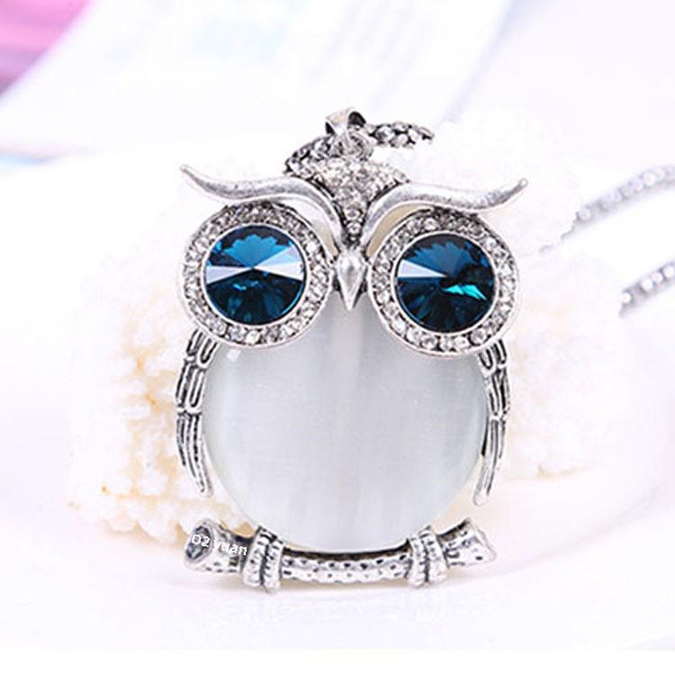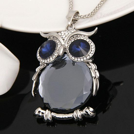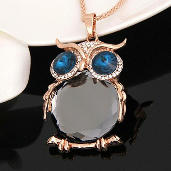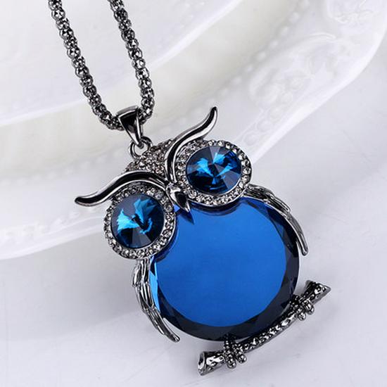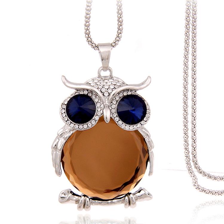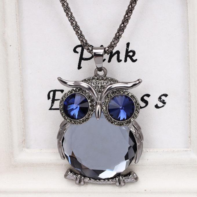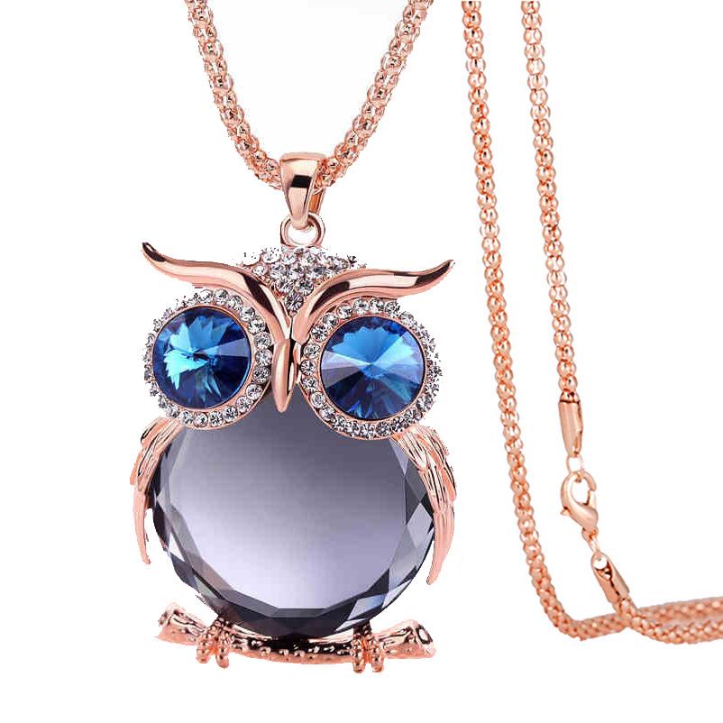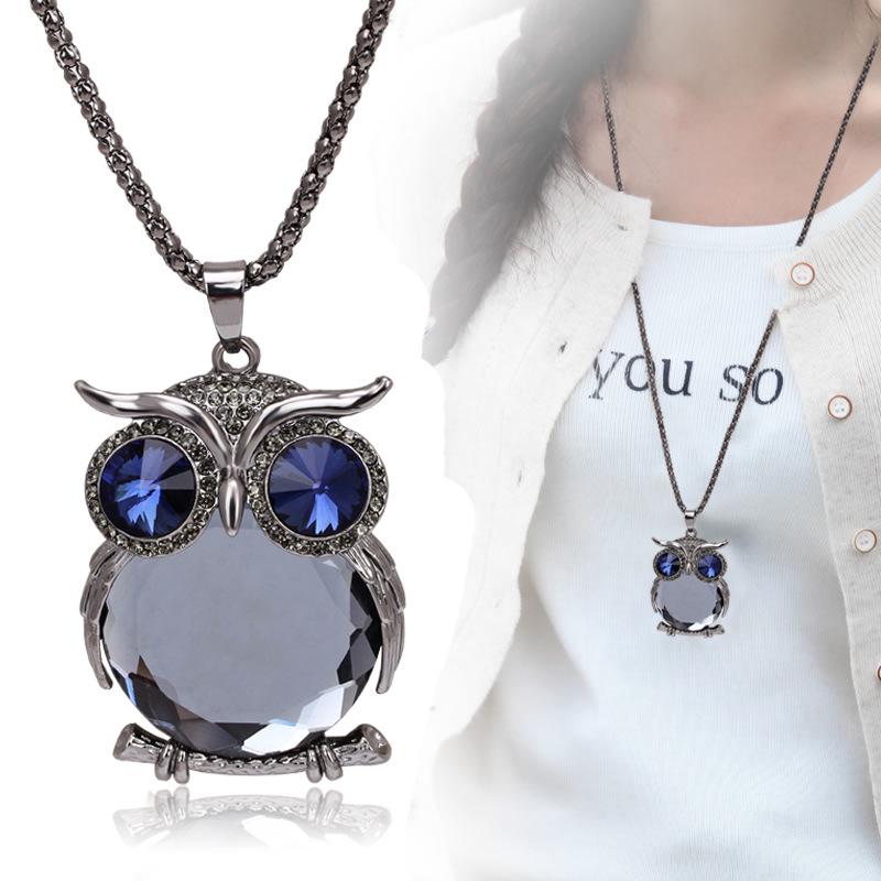 Ожерелье с подвеской в виде совы: Высококачественная цепочка для свитера с кристаллами для женщин
