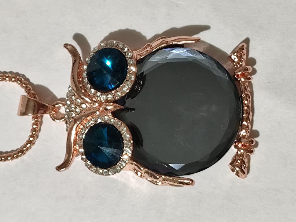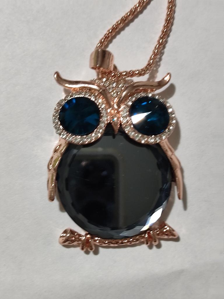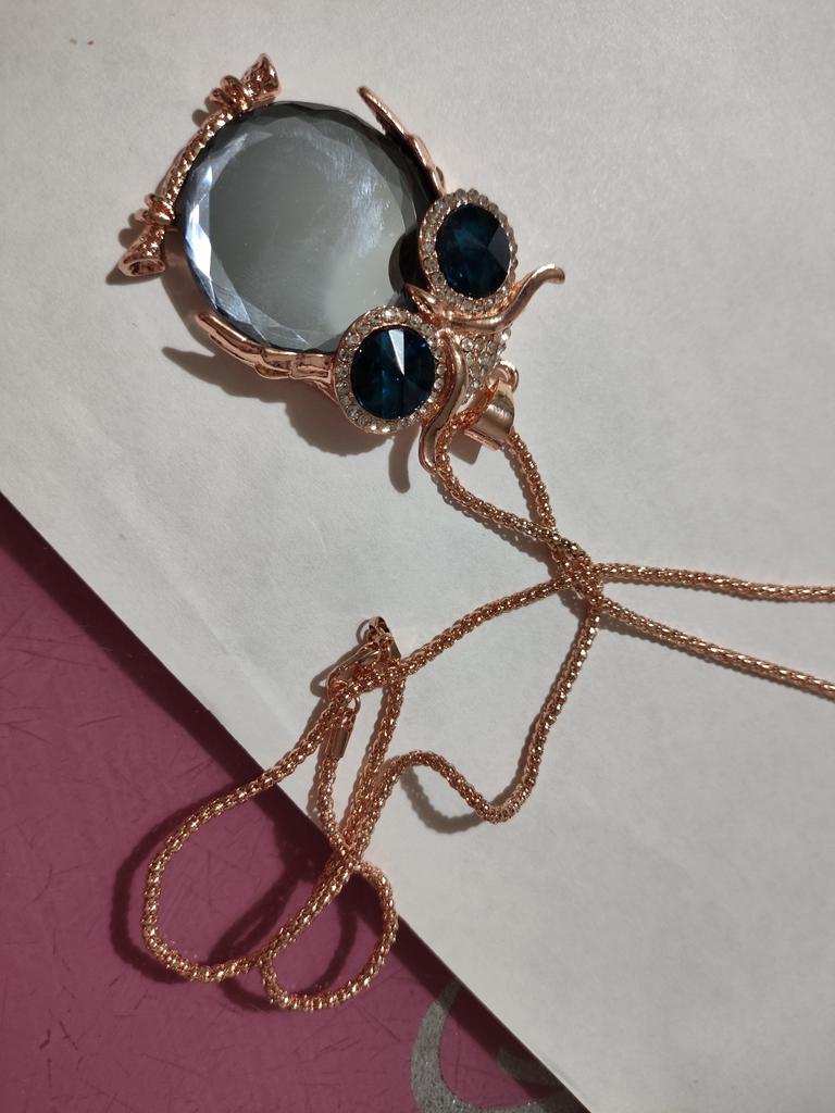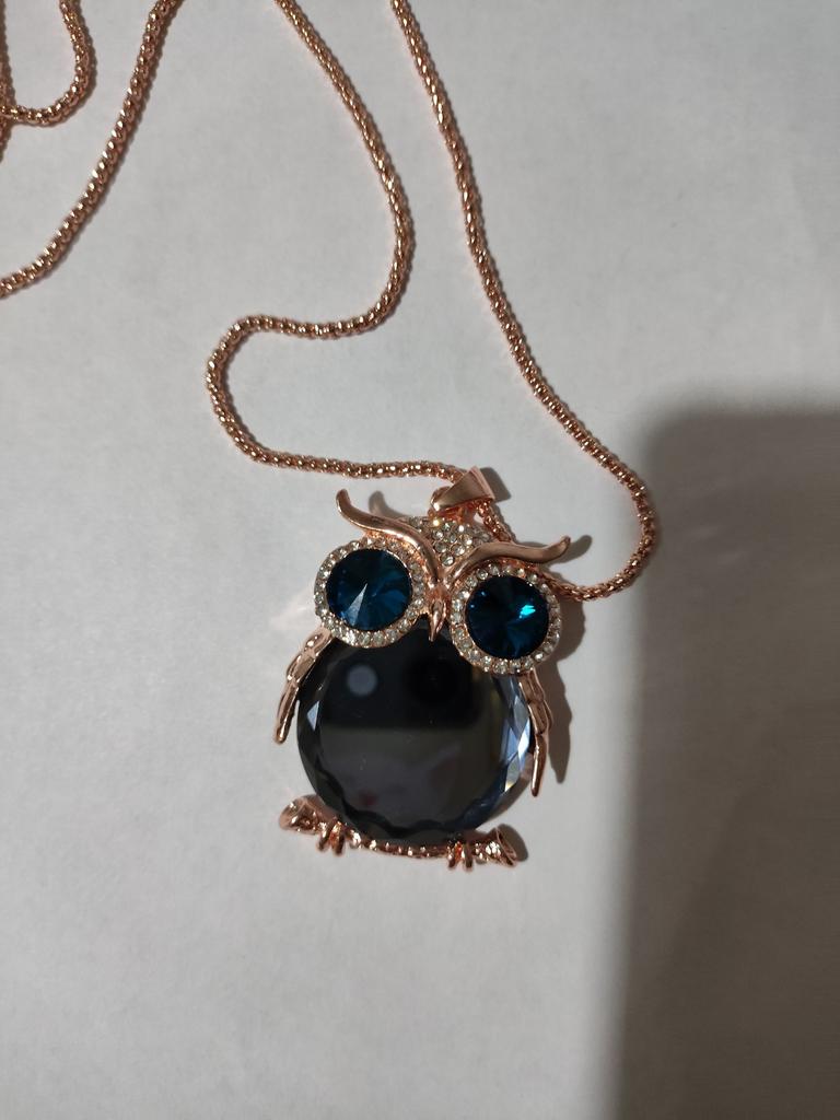 Выглядит дёшево и несуразно. Цепочка очень длинная, подвеска висит внизу на животе. Сова огромная.