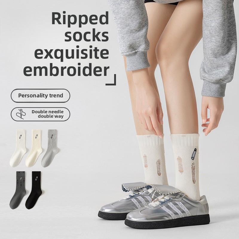 5 пар женских носков весна-лето нового стиля с вышивкой в виде ворса