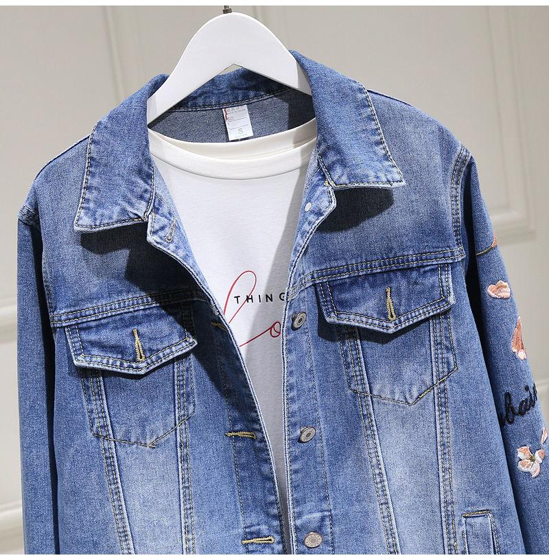 Весенне-осенняя женская джинсовая куртка с дикой вышивкой, пальто большого размера, джинсы, повседневная свободная уличная одежда больших размеров