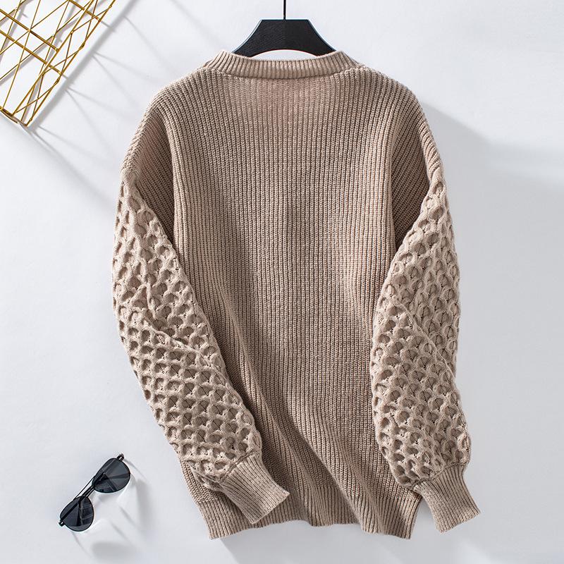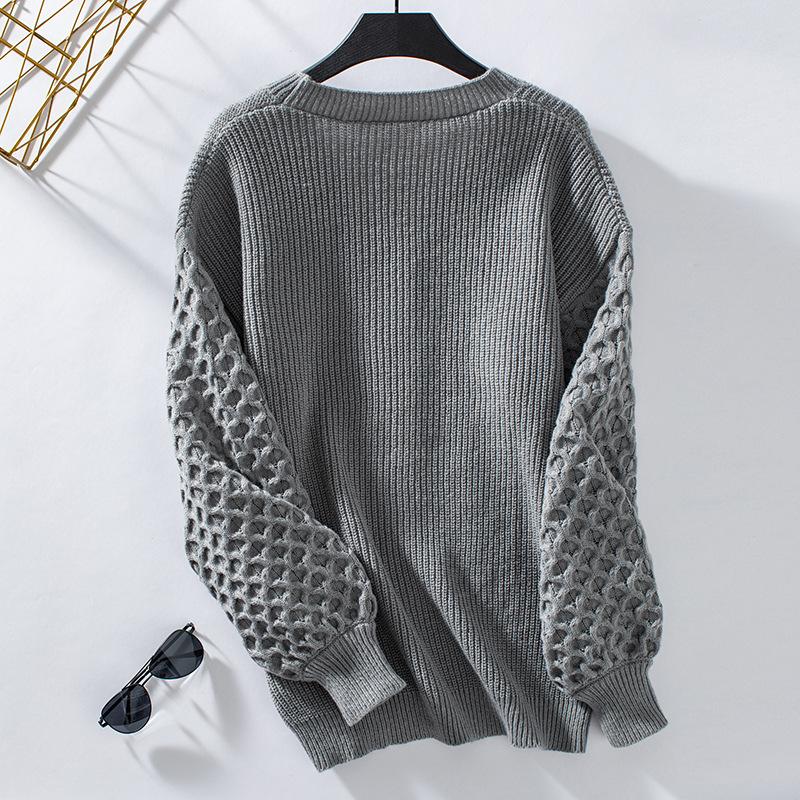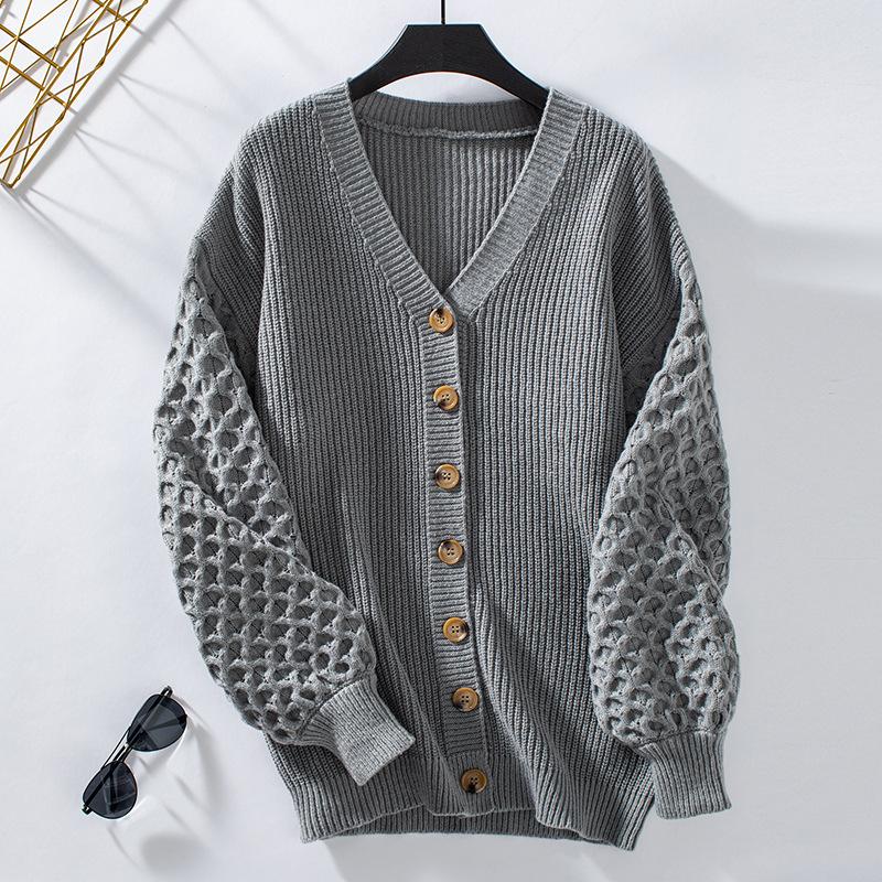 Женский осенне-зимний свитер с V-образным вырезом, однотонный однобортный свитер-кардиган в европейском и американском стиле с рукавами-фонариками