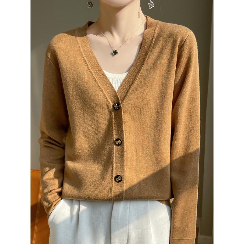 Весенне-осенний нежный ветровой шерстяной кардиган с v-образным вырезом, свитер, женский простой свободный однотонный вязаный жакет — купить товар онлайн с бесплатной доставкой по всему миру!