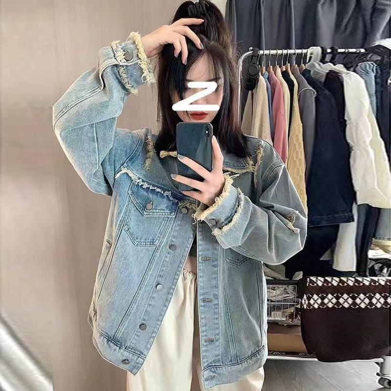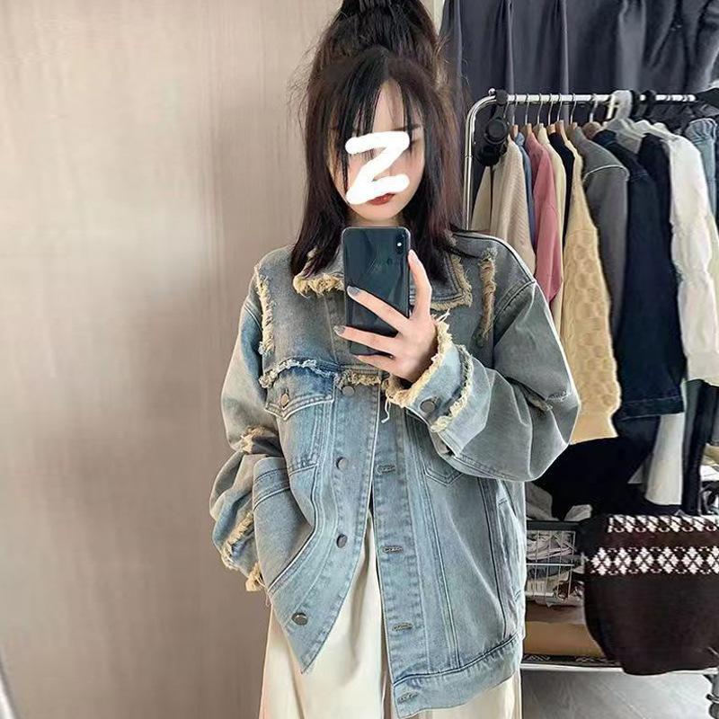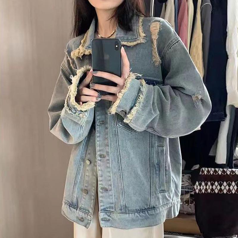 Джинсовая куртка с необработанными краями в стиле ретро, женская весенне-осенняя свободная повседневная рабочая одежда, куртка, топы Tide