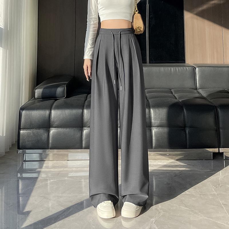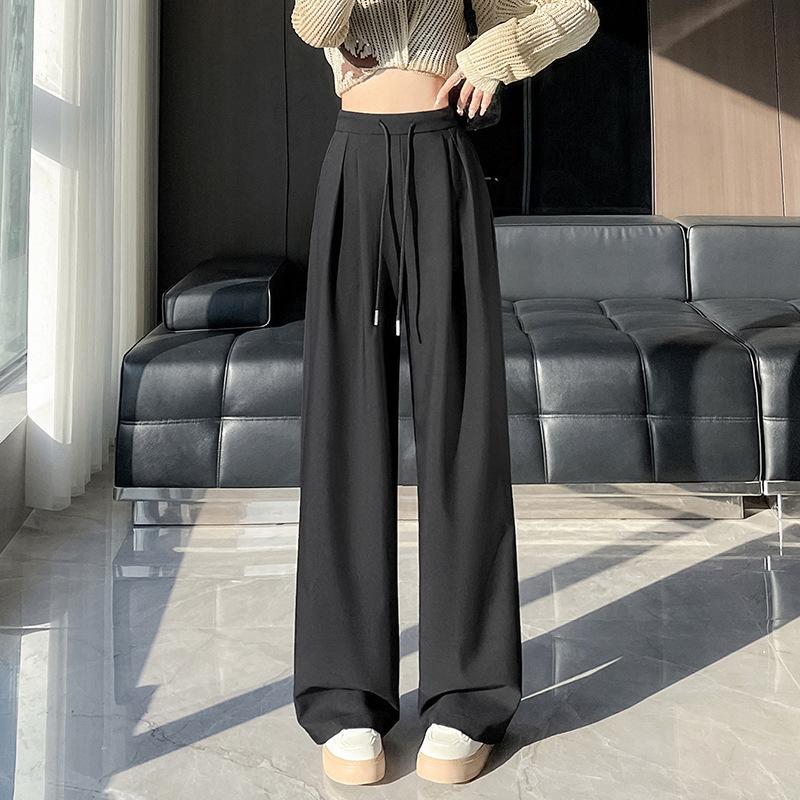 Драпированные брюки-костюм для женщин Новые прямые и свободные брюки с высокой посадкой, стройнящие, черные брюки широкого кроя для женщин
