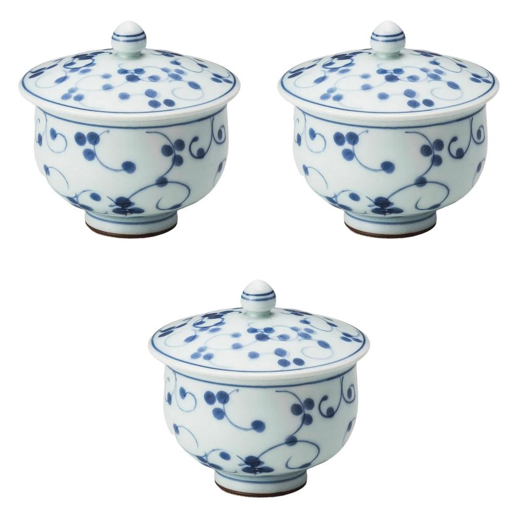Набор из 3-х заварочных чайников с крышками в горошек, арабески, с крышкой, керамика Sencha Arita, Setomonohonpo [9,5×8,5 см] (180 куб.см)] (Арита Уэр)