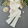 Модный женский костюм, однобортный трикотажный жакет с длинными рукавами и воротником + жилет + прямые широкие брюки с высокой талией, костюм-тройка