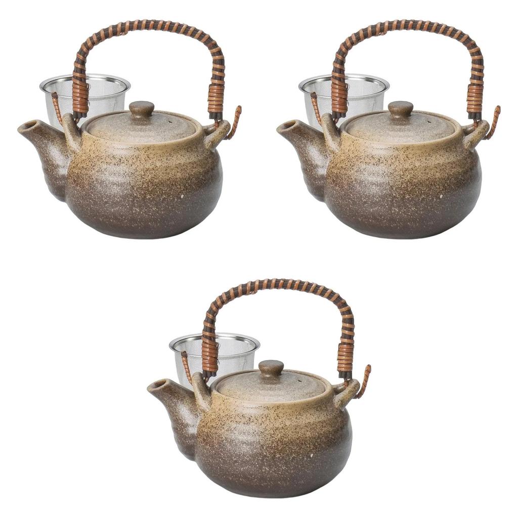 Набор из 3 черных круглых глиняных чайников Bizen xx см, глиняная посуда, керамика Setomonohonpo [18,5 13,5 10,5 900 куб. см] Чайники, (Фаянсовая посуда)