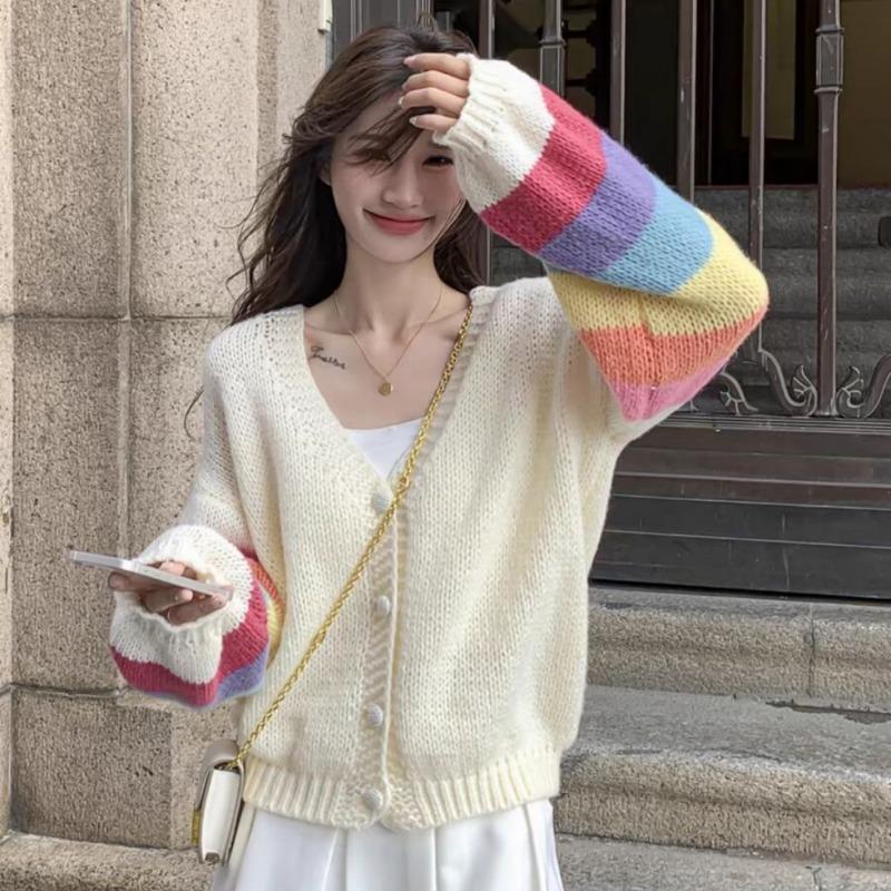 Осенний элегантный вязаный кардиган с V-образным вырезом, женская мода, новый длинный рукав, милые свободные короткие кардиганы, куртка, женские тонкие повседневные зимние свитера, пальто 25564
