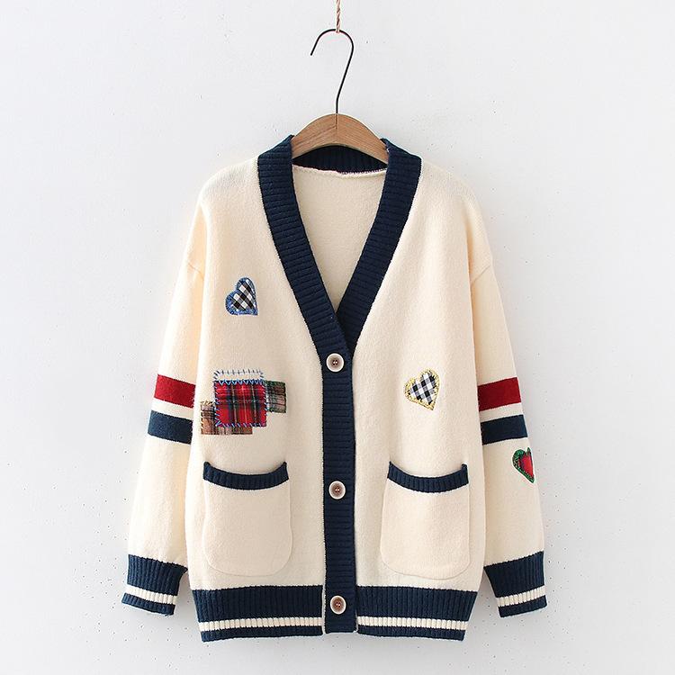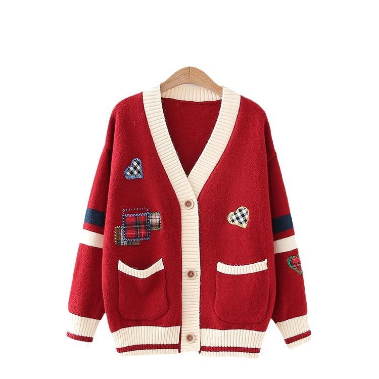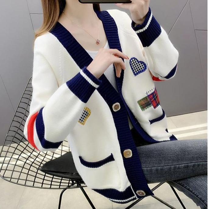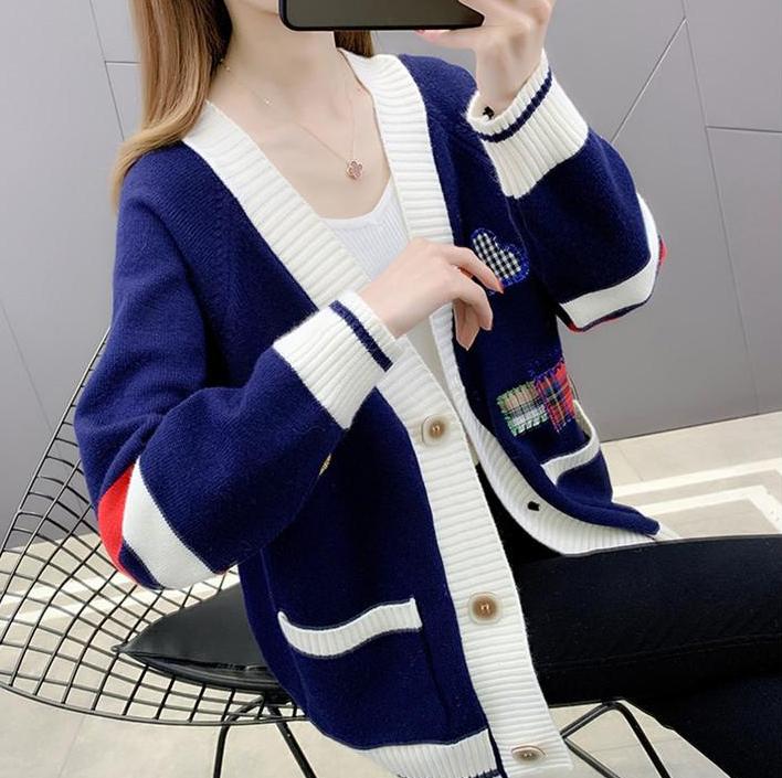 Зимние свитера, вязаный кардиган для женщин, свободные повседневные винтажные пальто с цветными блоками, осенние топы с V-образным вырезом в корейском стиле с длинными рукавами для женщин