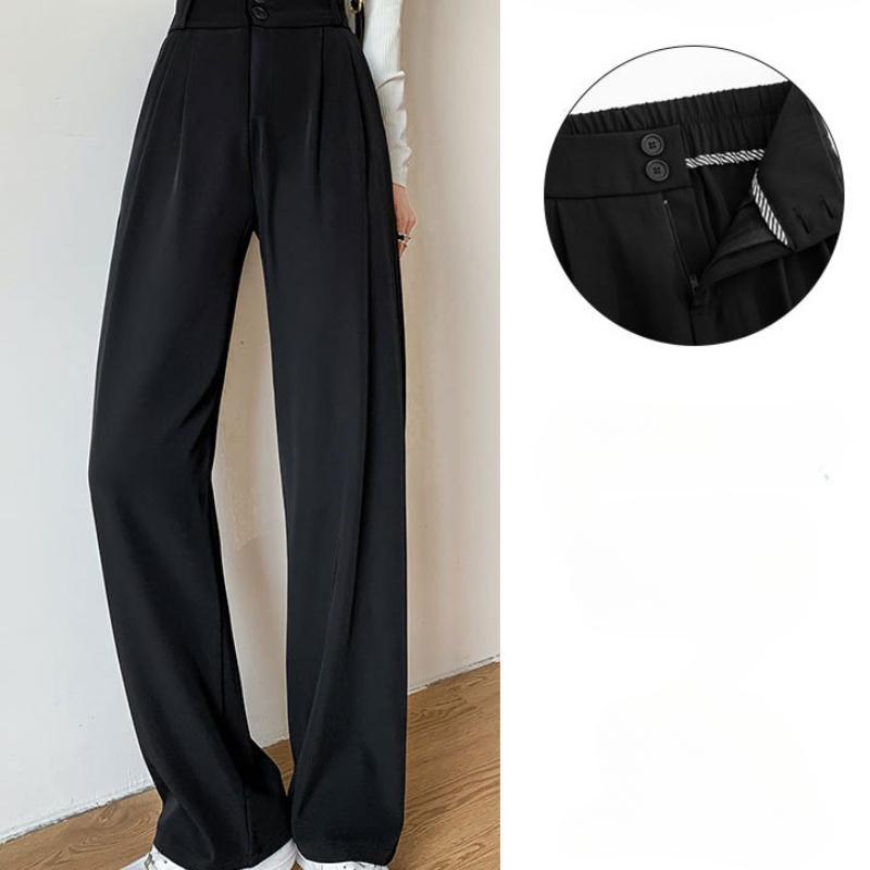 Весенние и осенние брюки с высокой талией и драпировкой, черные брюки в стиле вестерн для женщин, прямые широкие брюки