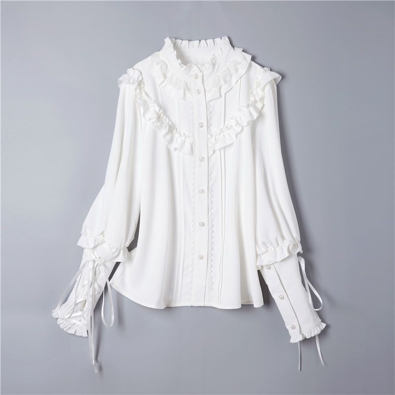 Женская одежда, винтажные однотонные блузки с рукавами Gigot в стиле Лолиты, сладкий топ для девочек, кружевные бандажные топы с оборками, готическая одежда Y2k, рубашки — купить товар онлайн с бесплатной доставкой по всему миру!