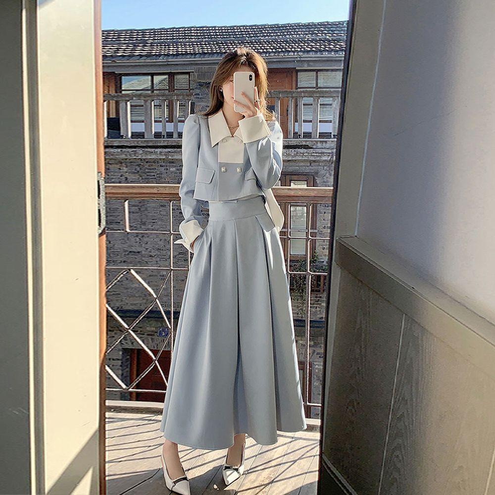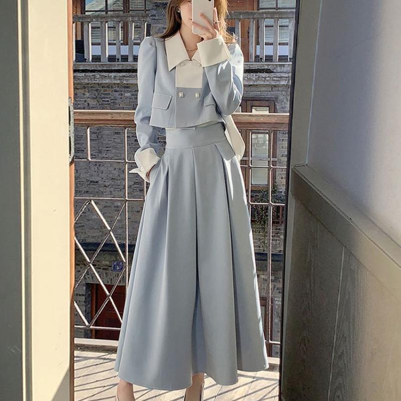 Элегантные женские весенние корейские модные пиджаки, винтажные пиджаки с длинными рукавами + длинные юбки с высокой талией, комплекты из 2 предметов, офисные женские туфли