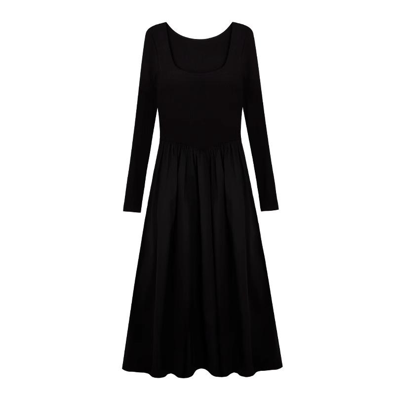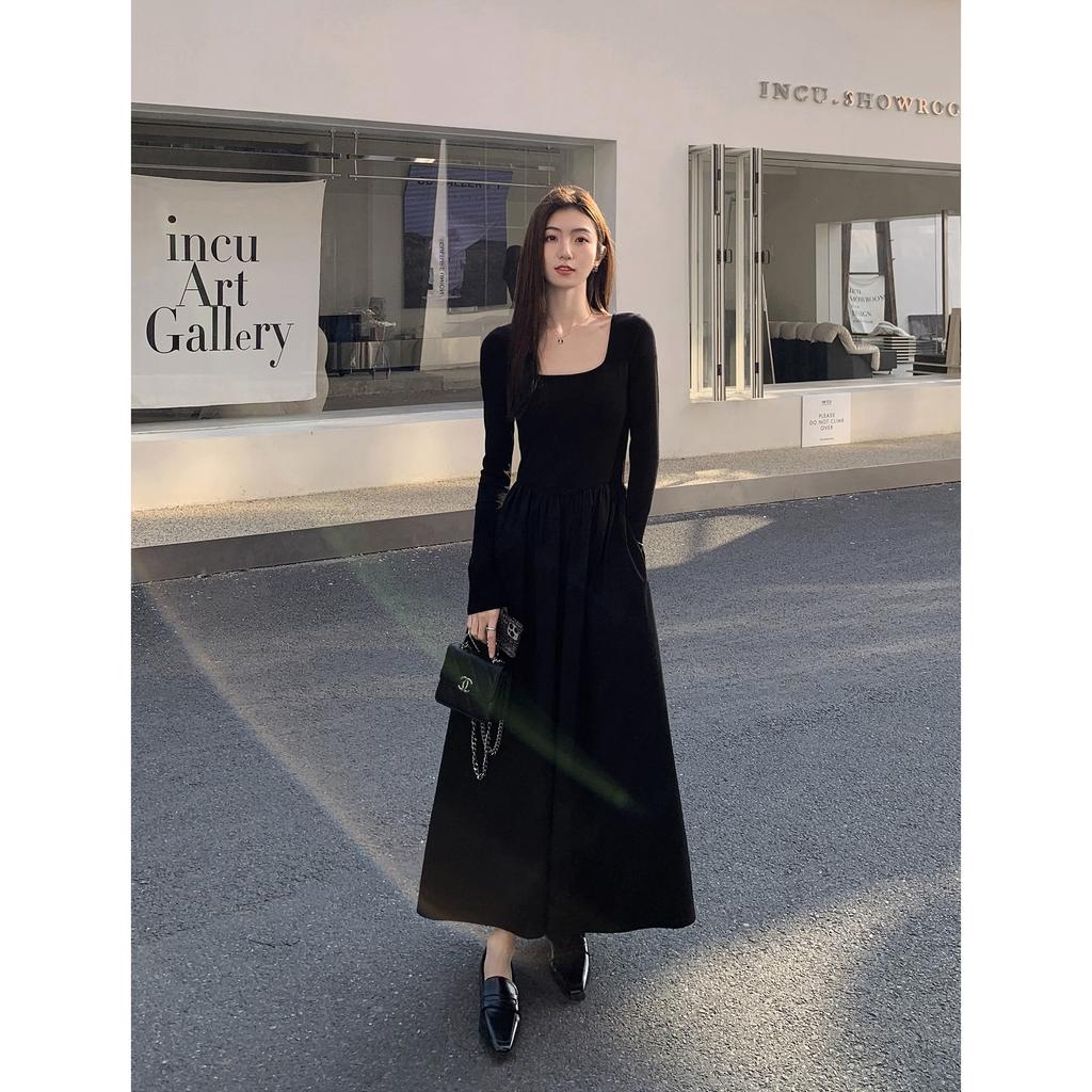 Весенние длинные платья, женские осенние базовые элегантные трапециевидные платья с квадратным воротником, винтажное платье во французском стиле с длинными рукавами