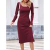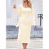 Женское однотонное платье с длинным рукавом, квадратным вырезом, облегающее и элегантное, длинное — купить товар онлайн с бесплатной доставкой до всему миру!