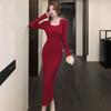 Осенне-зимнее платье с квадратным воротником, облегающее трикотажное платье для женщин, холодный ветер, высококачественный свитер с чувством темперамента, длинное платье