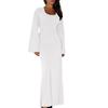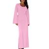 Женское элегантное трикотажное платье с завязкой на талии, платье макси с роговыми рукавами для женщин, однотонное длинное платье с U-образным вырезом, облегающее осеннее платье в рубчик