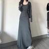 Нестандартное длинное платье Y2k для женщин с высокой талией, рукавами, однотонное, базовое, элегантное, корейское, модное, уличная одежда, минималистичное, сексуальное, винтажное