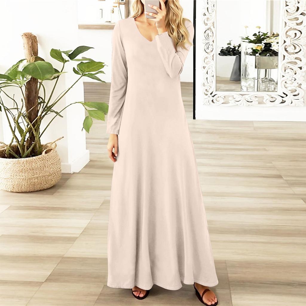 Женские повседневные модные длинные платья с длинным рукавом, однотонные, винтажные, длинные, осень — купить товар онлайн с бесплатной доставкой по всему миру!