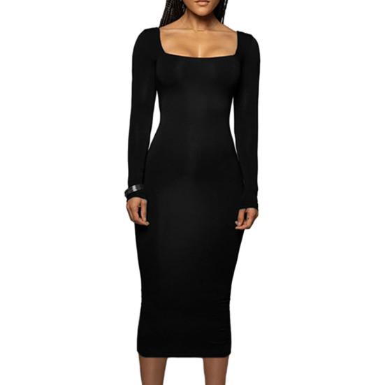 Элегантный и стильный: Это однотонное платье, изготовленное из высокоэластичного полиэстера и спандекса, излучает элегантность и стиль и идеально подходит для различных случаев.