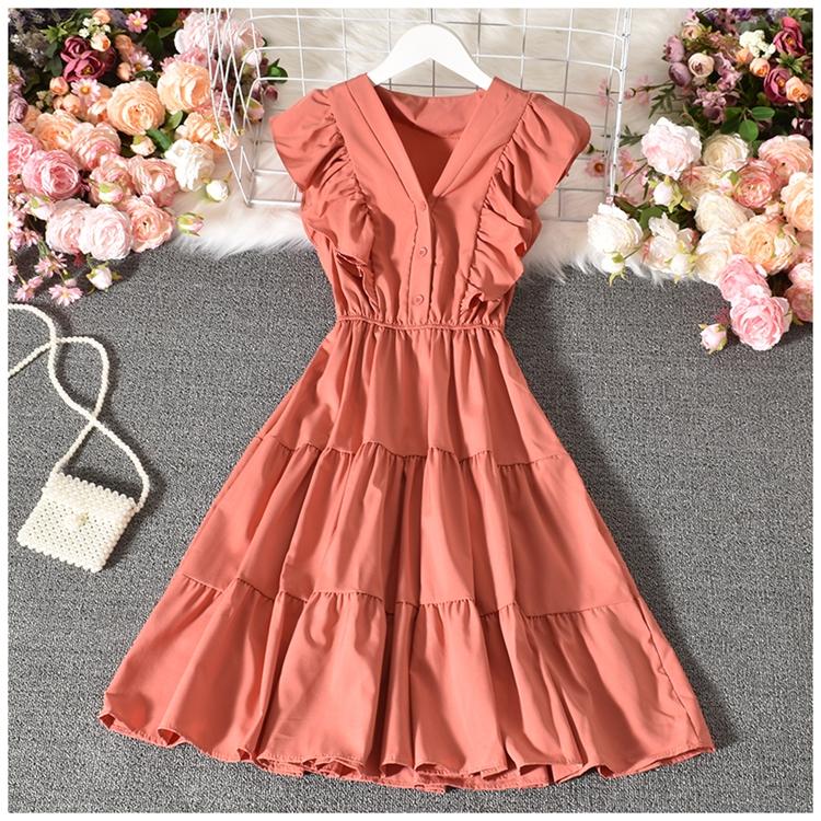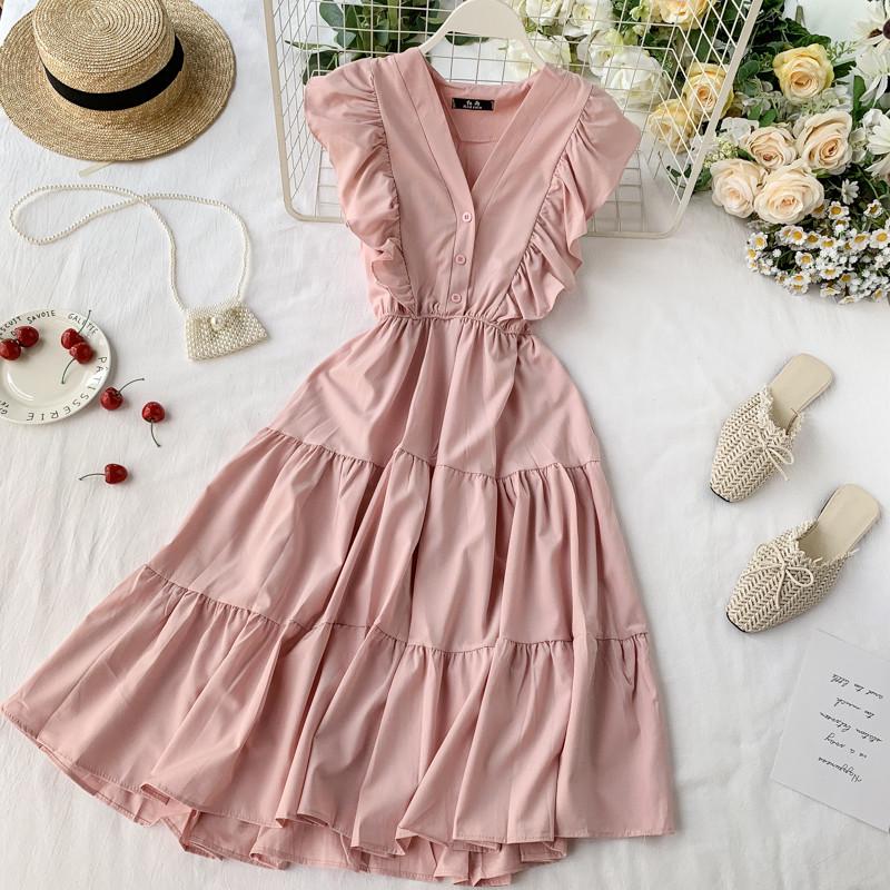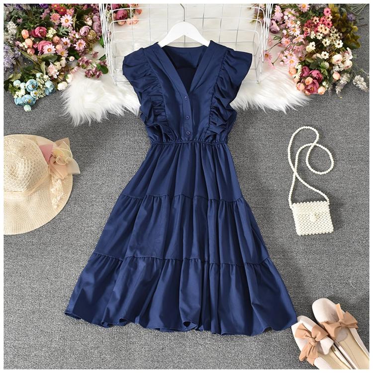 Модное женское платье с рюшами, милое плиссированное платье без рукавов с v-образным вырезом, повседневное летнее платье, Vestidos