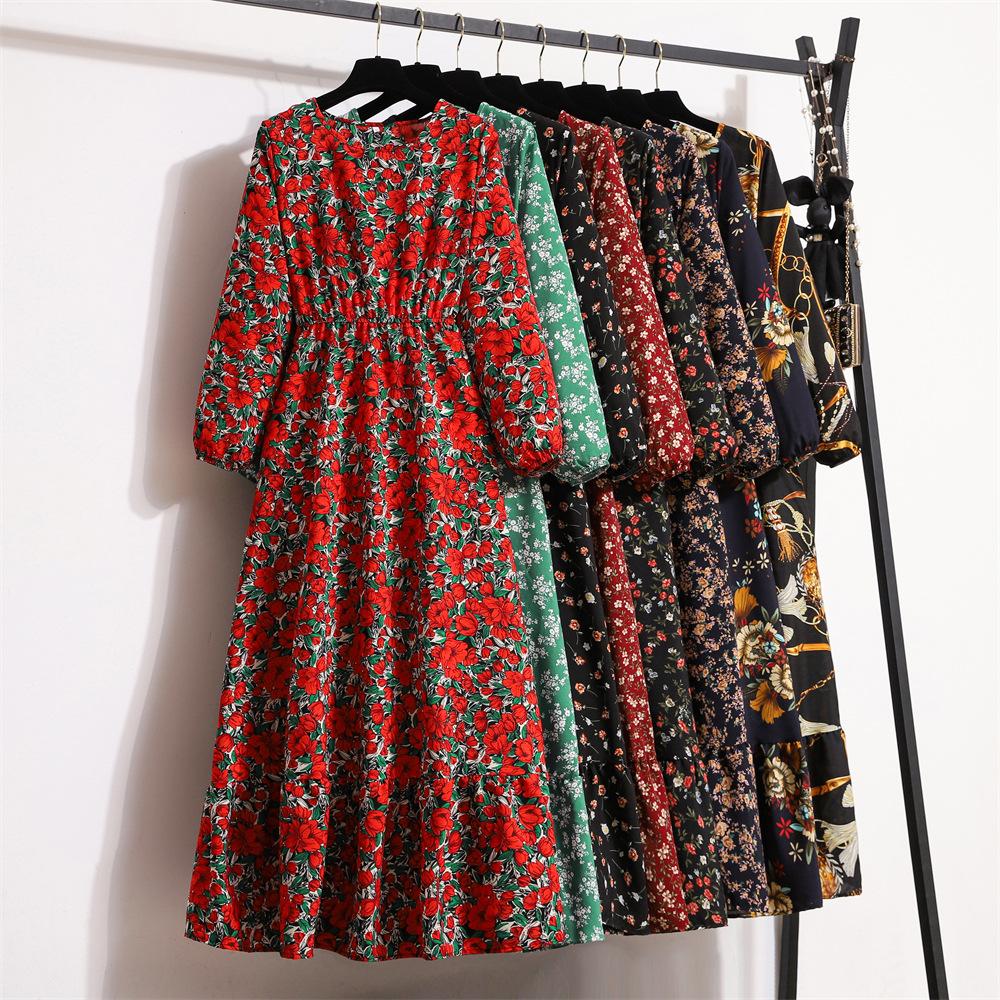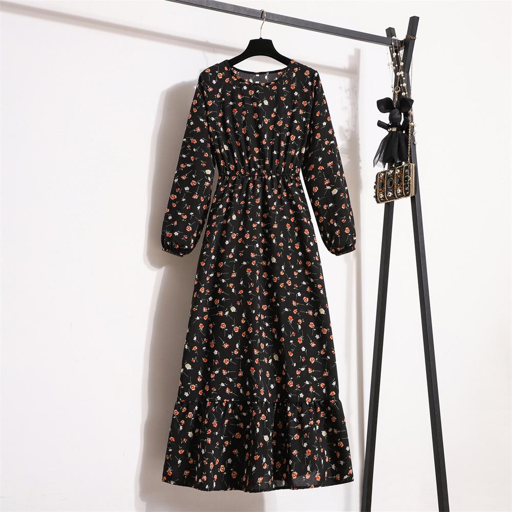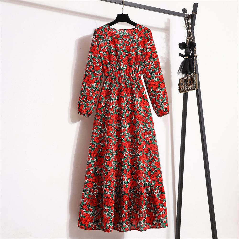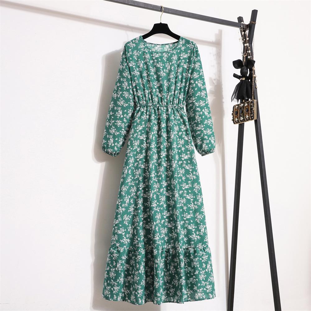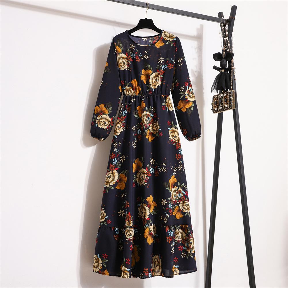 Мусульманское платье женское весенне-осеннее элегантное длинное платье с длинным рукавом с тонкой эластичной резинкой на талии и цветочным принтом длинные платья
