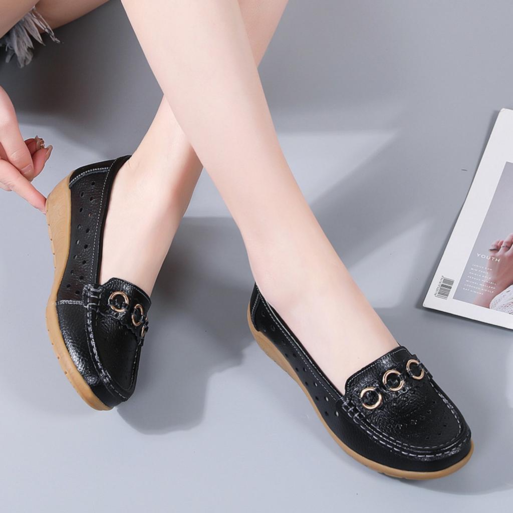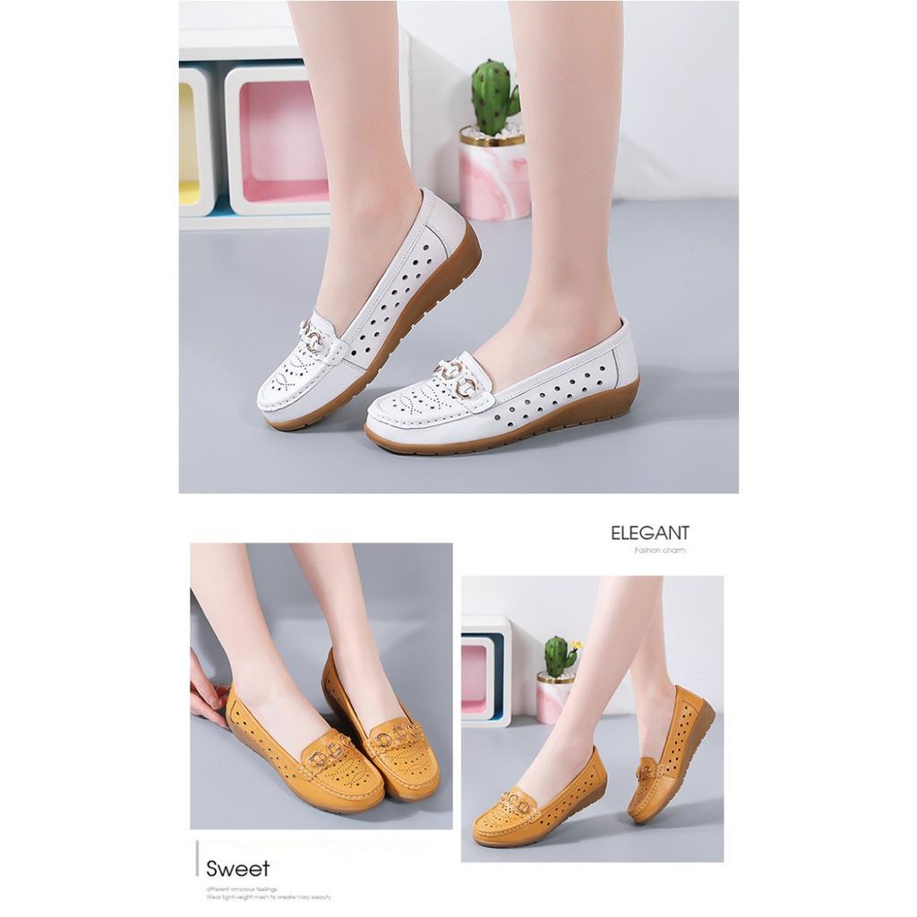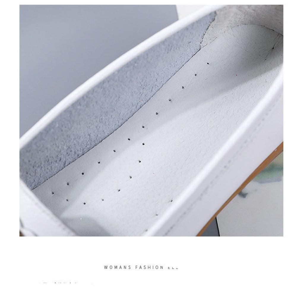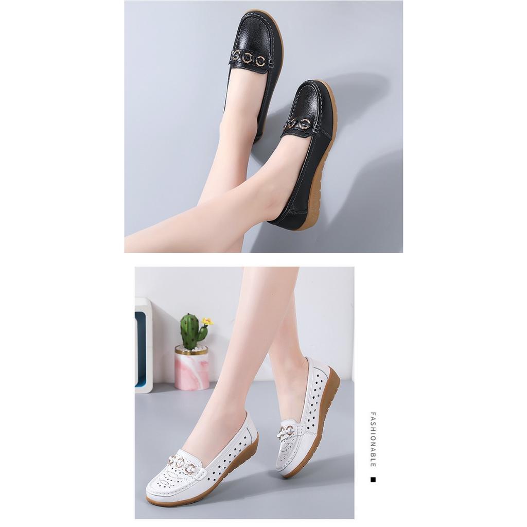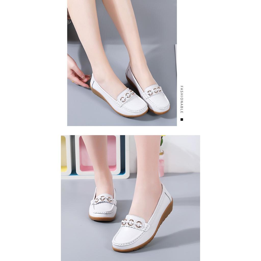 Женские повседневные мокасины | Комплект из дышащего синтетического материала с металлической цепочкой | Круглый носок, перфорированный дизайн, легкие белые туфли на плоской подошве