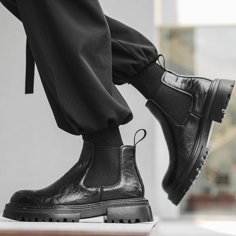 Винтажные ботинки Мартин на платформе с круглым носком в британском стиле, мужские, 2024, новая коллекция, одинарная обувь, толстый каблук, ботинки Челси 2114-J