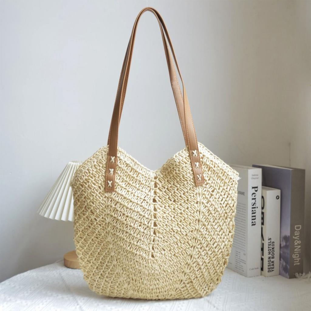 Большая соломенная сумка в стиле ленивой плетеная сумка для хранения вещей Большая вместительная сумка для поездок на работу Сумка-тоут для пляжа на берегу моря Плетеная пляжная сумка