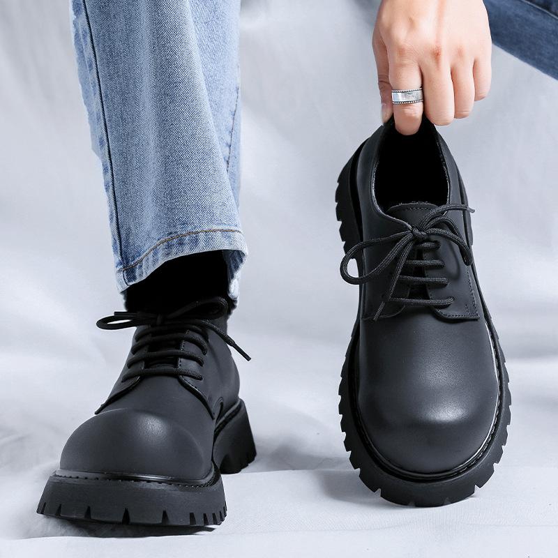 Retro thick-soled heightening derby shoes men's autumn big-head tooling shoes low-top big yellow boots round-head leather shoes 1035-M — купить товар онлайн с бесплатной доставкой по всему миру!
