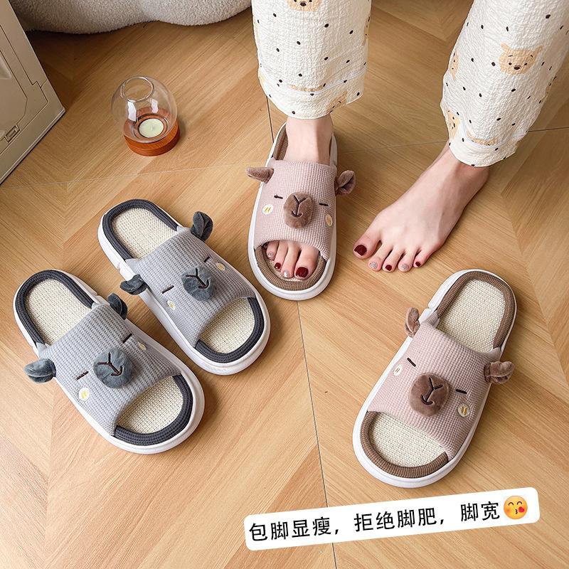 Льняные тапочки женские весна и осень 2025 новые домашние тапочки для пар из нескользящего хлопка и льна мужские тапочки на все четыре сезона