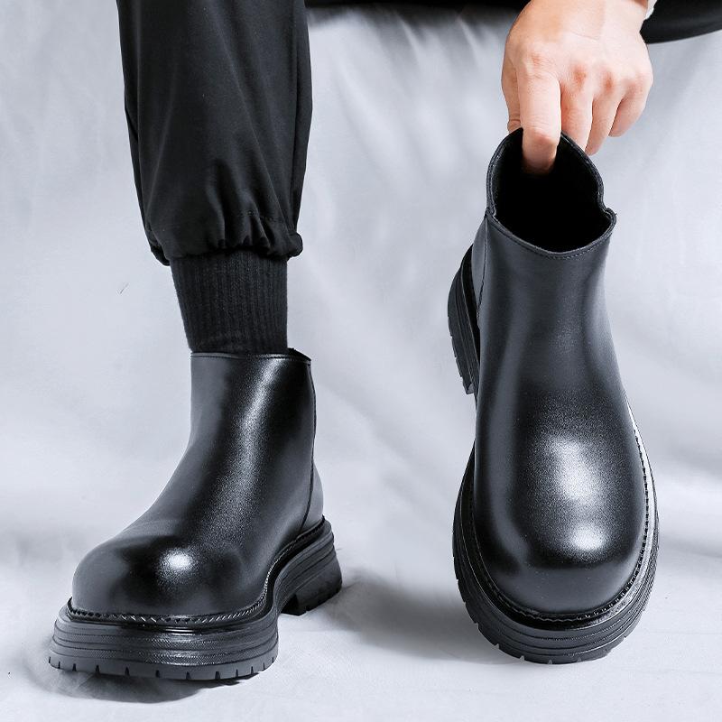 Ботинки Челси Мужские высокие ботинки Британские ботинки-сигареты на платформе с увеличенным голенищем Зимние ботинки Martin 22720-R — купить товар онлайн с бесплатной доставкой до всему миру!