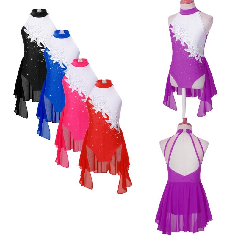 Детское балетное гимнастическое трико для девочек, платье со стразами и блестками, лирическое танцевальное платье для катания на коньках, сценические костюмы балерины
