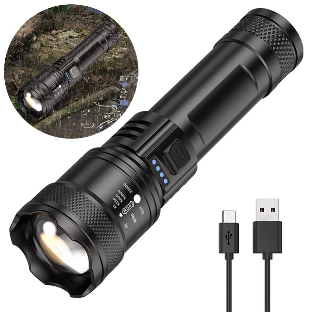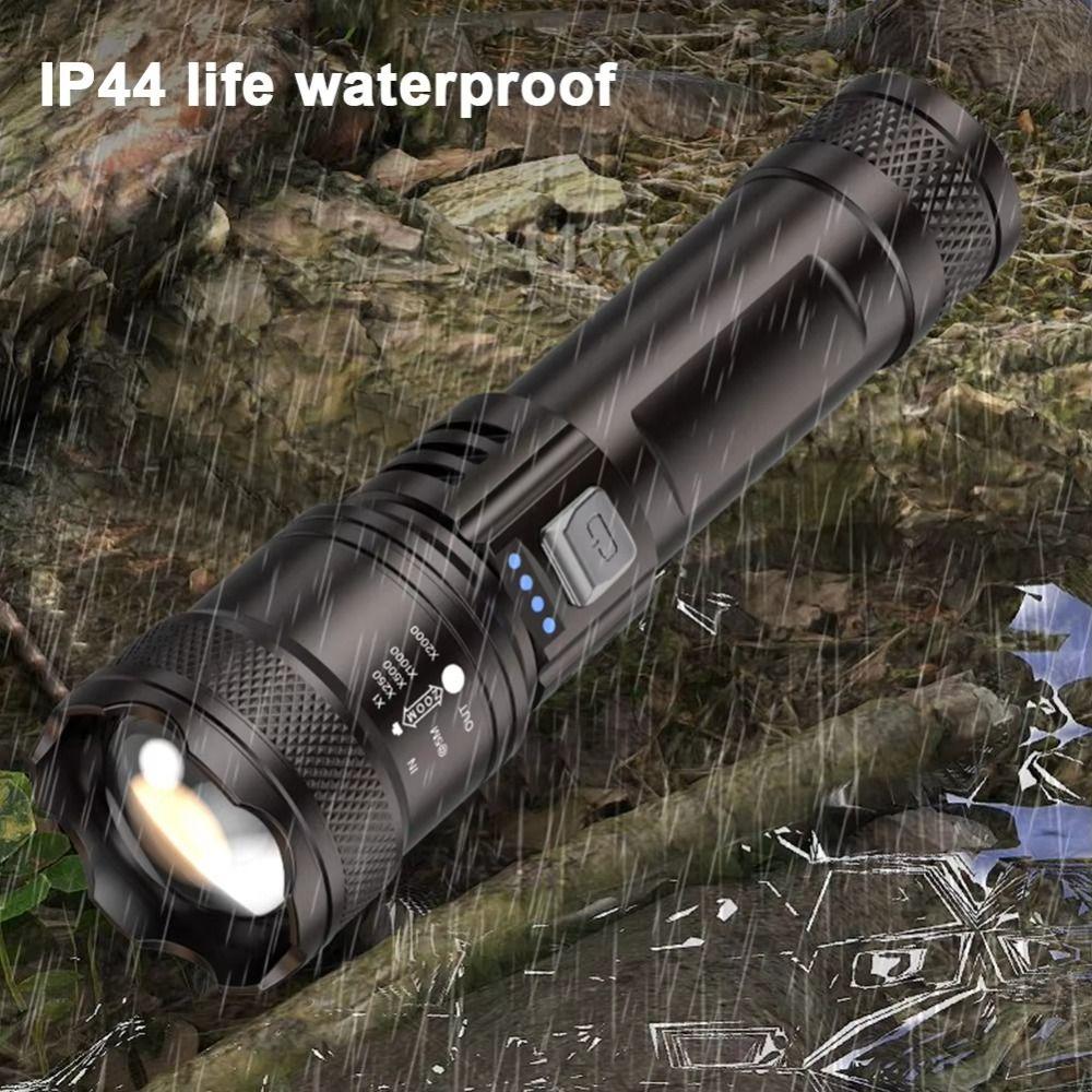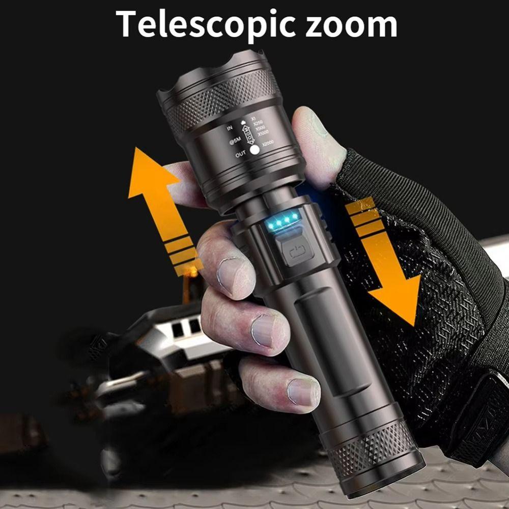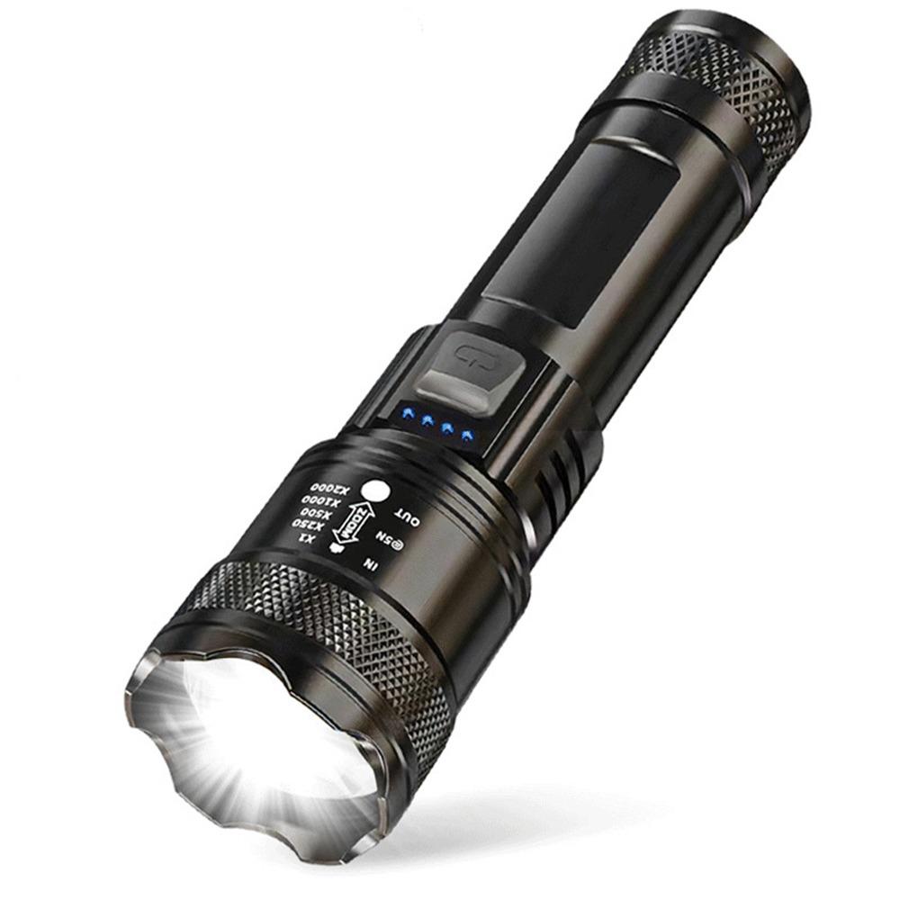 USB Rechargeable LED Flashlight Power Display Camping Lantern High Power Work Light for Fishing