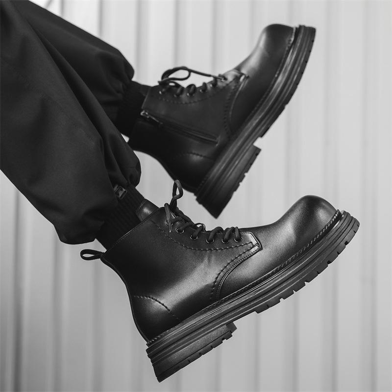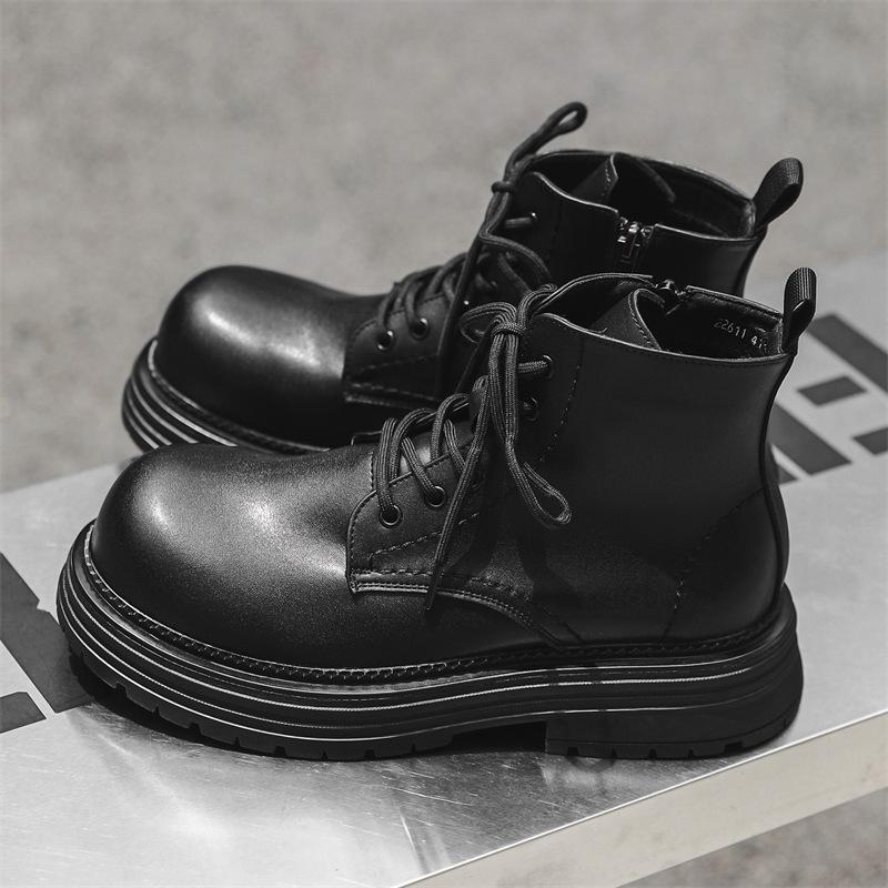 British Martin boots men's thick-soled heightening tooling boots business handsome high-top leather shoes niche short boots 22721-J