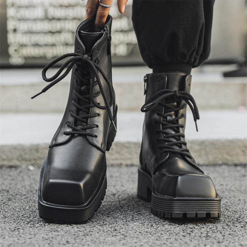 Мужские ботинки Мартин в британском стиле 2025 новые на толстой подошве тонкие ботинки Мартин черные весенне-осенние одинарные ботинки на боковой молнии 8119-J