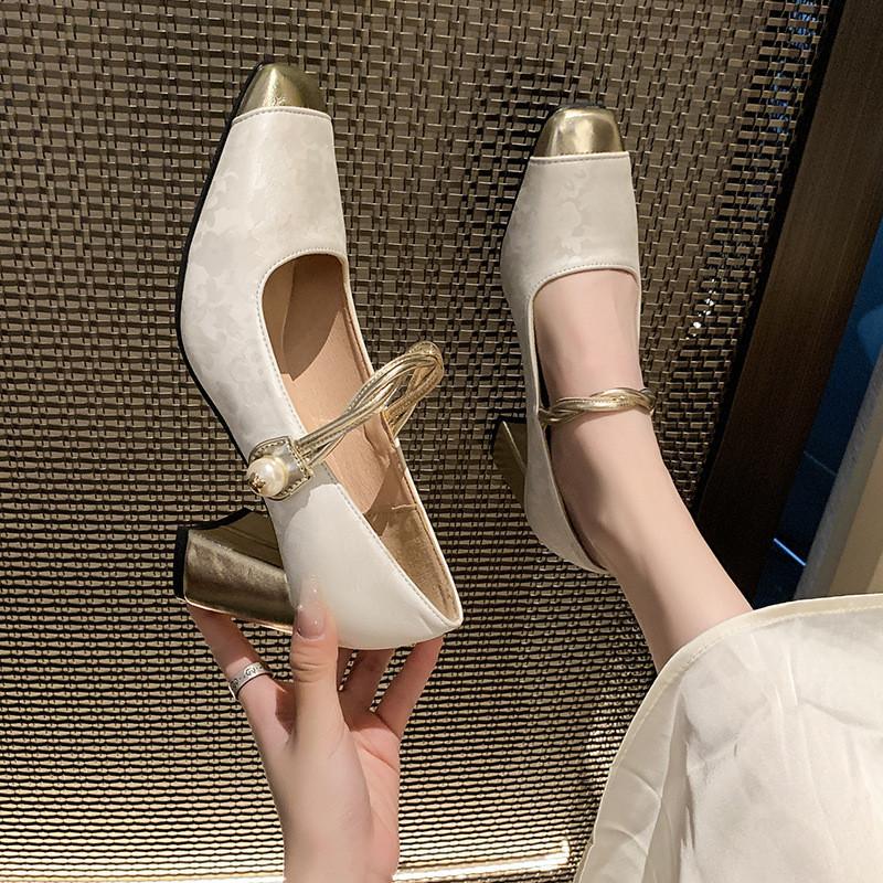 New Chinese high heels 2025 new summer national style square head thick heel single shoes light mouth retro Mary Jane women's shoes