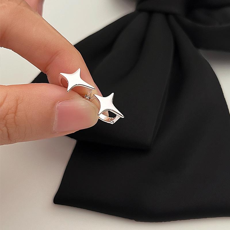 Блестящие серьги-клипсы в виде четырехлучевой звезды, в японском и корейском стиле, базовые простые, уличный панк-стиль, серьги-звезды с крестом
