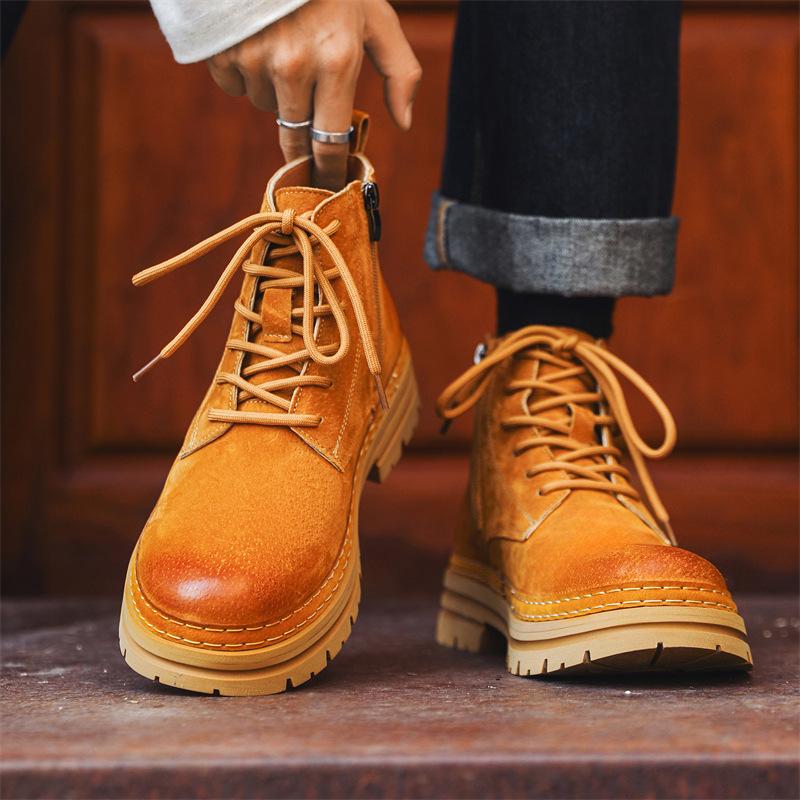 Ботинки мартин мужские осенне-зимние новые ботинки цвета ревеня повседневные рабочие ботинки средней высоты универсальные короткие ботинки 4518-J — купить товар онлайн с бесплатной доставкой до всему миру!