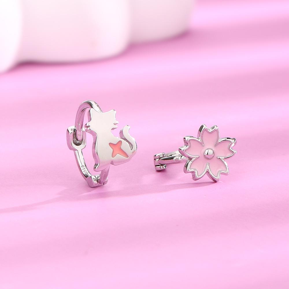 Розовые серьги-клипсы с глазурью в виде кошки и цветка, Дондэмун, милые студенческие серьги для девушки, котенок, цвет сакуры, асимметричные серьги — купить товар онлайн с бесплатной доставкой по всему миру!