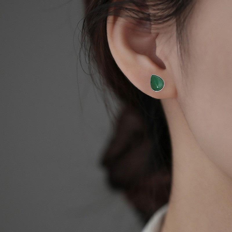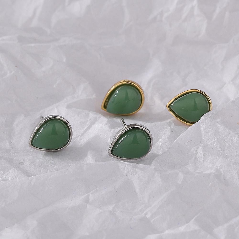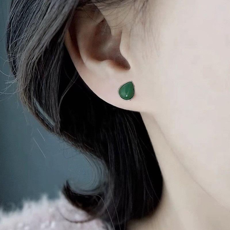 Серьги-гвоздики Hetian Jade Natural Water Drop, холодный ветер, темперамент, пригородные серьги Cheongsam Hanfu, маленькие домашние серьги Jasper